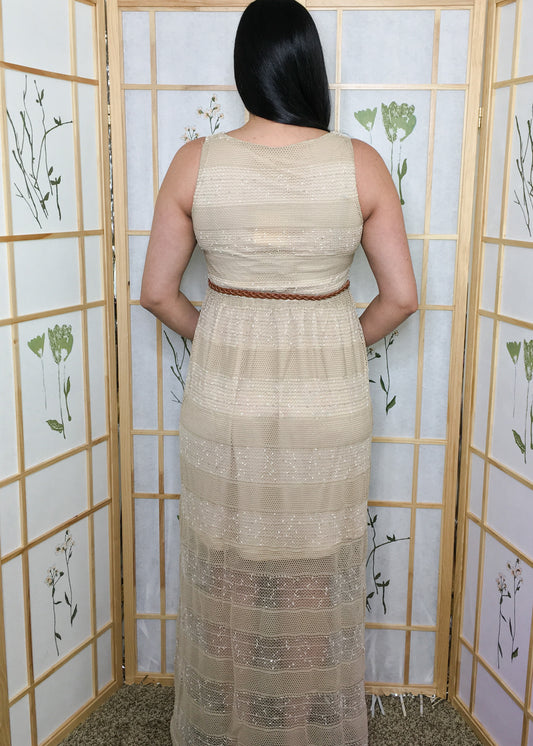Catleya- Crochet Maxi Dress in Beige