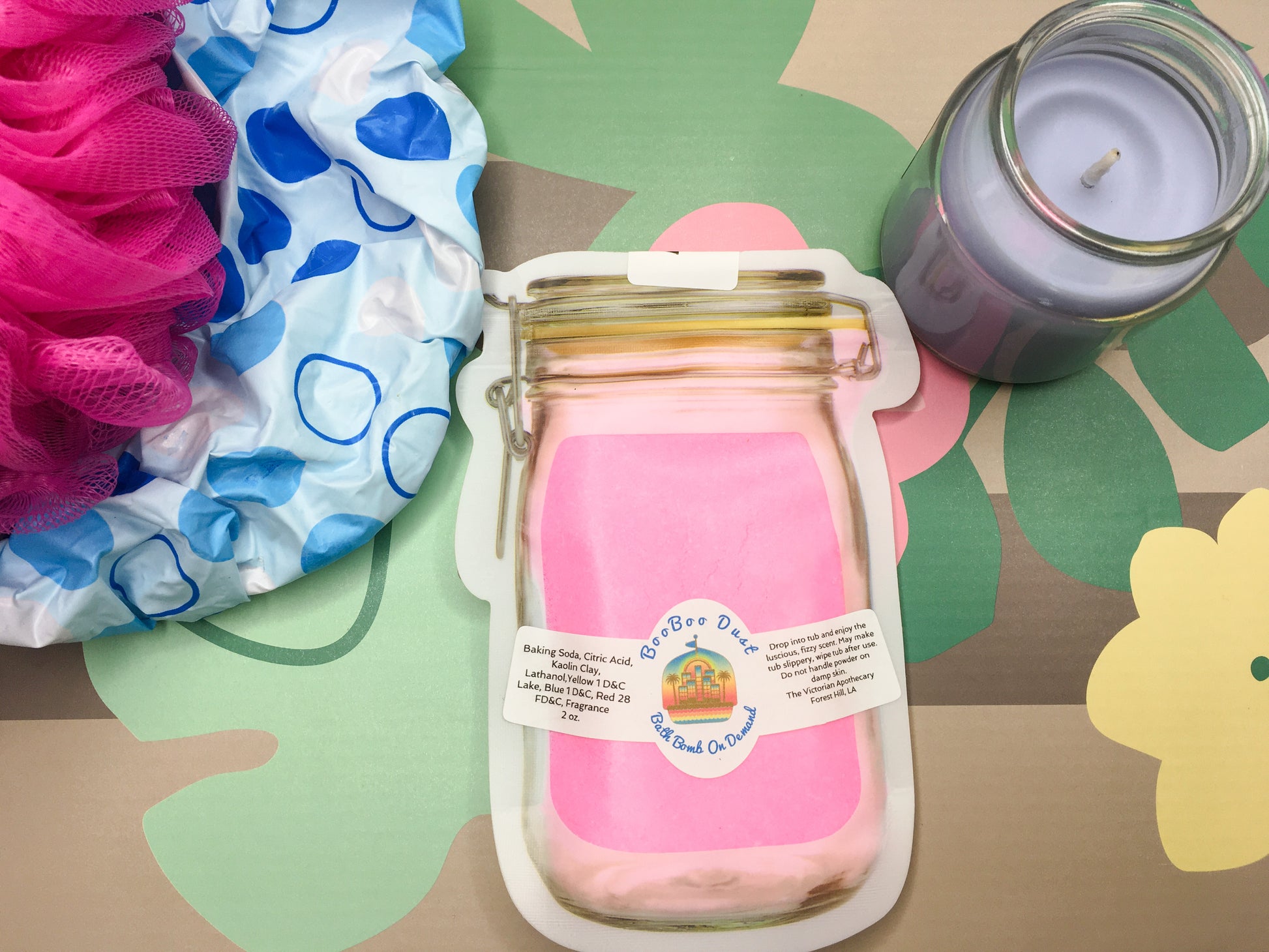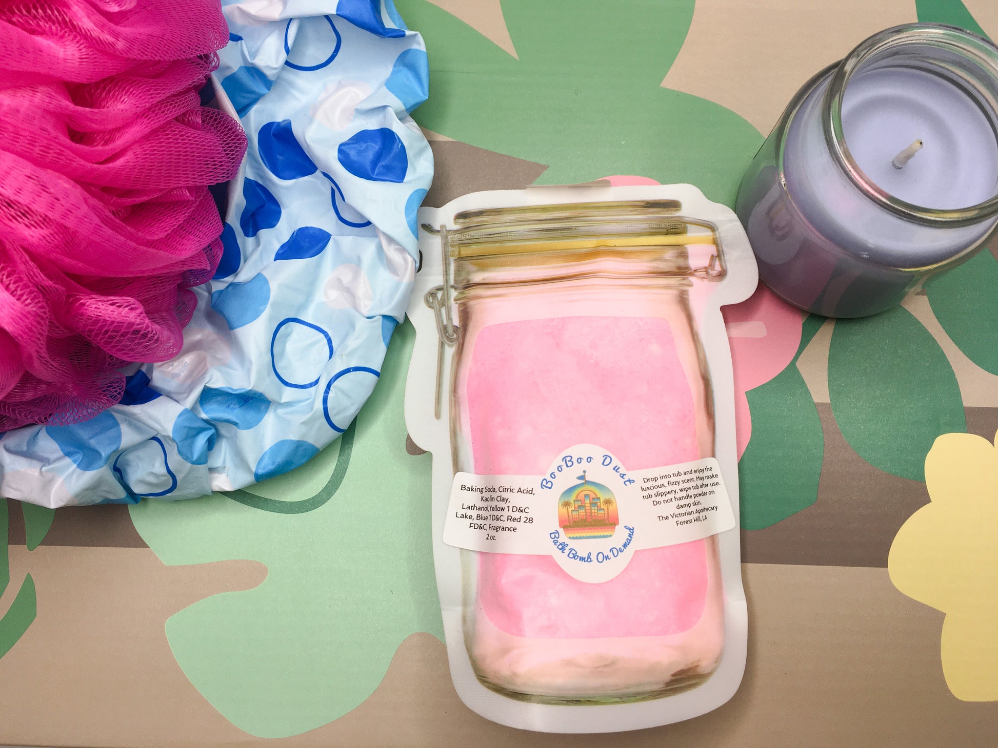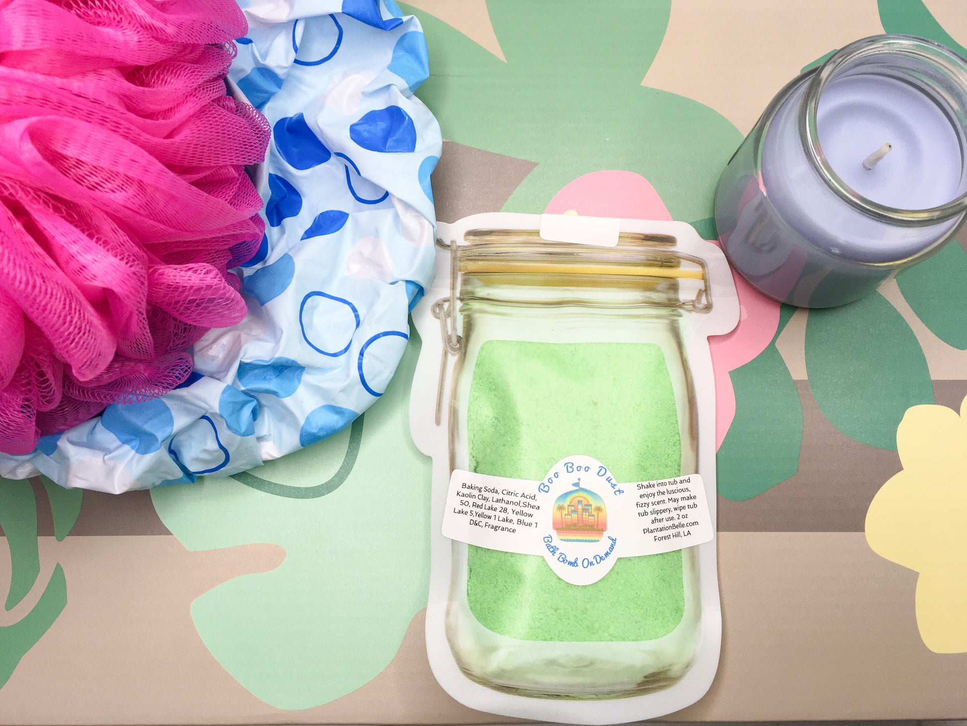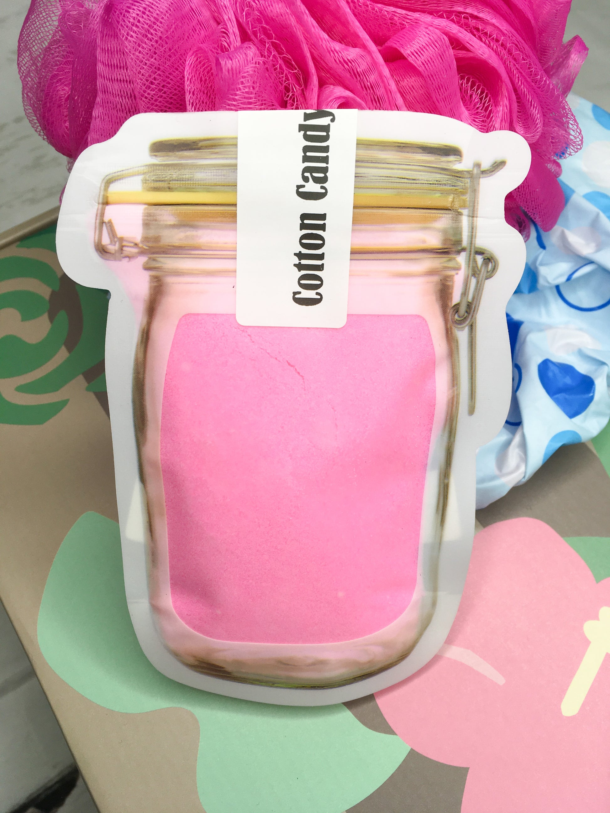 Ingredients in Mango Tango, Cotton Candy, Peachy Keen, Watermelon,: Baking soda, citric acid, kaolin clay, FD&C Blue 1 and fragrance, lathanol, yellow 1 D&C lake, red 28 FD&C.