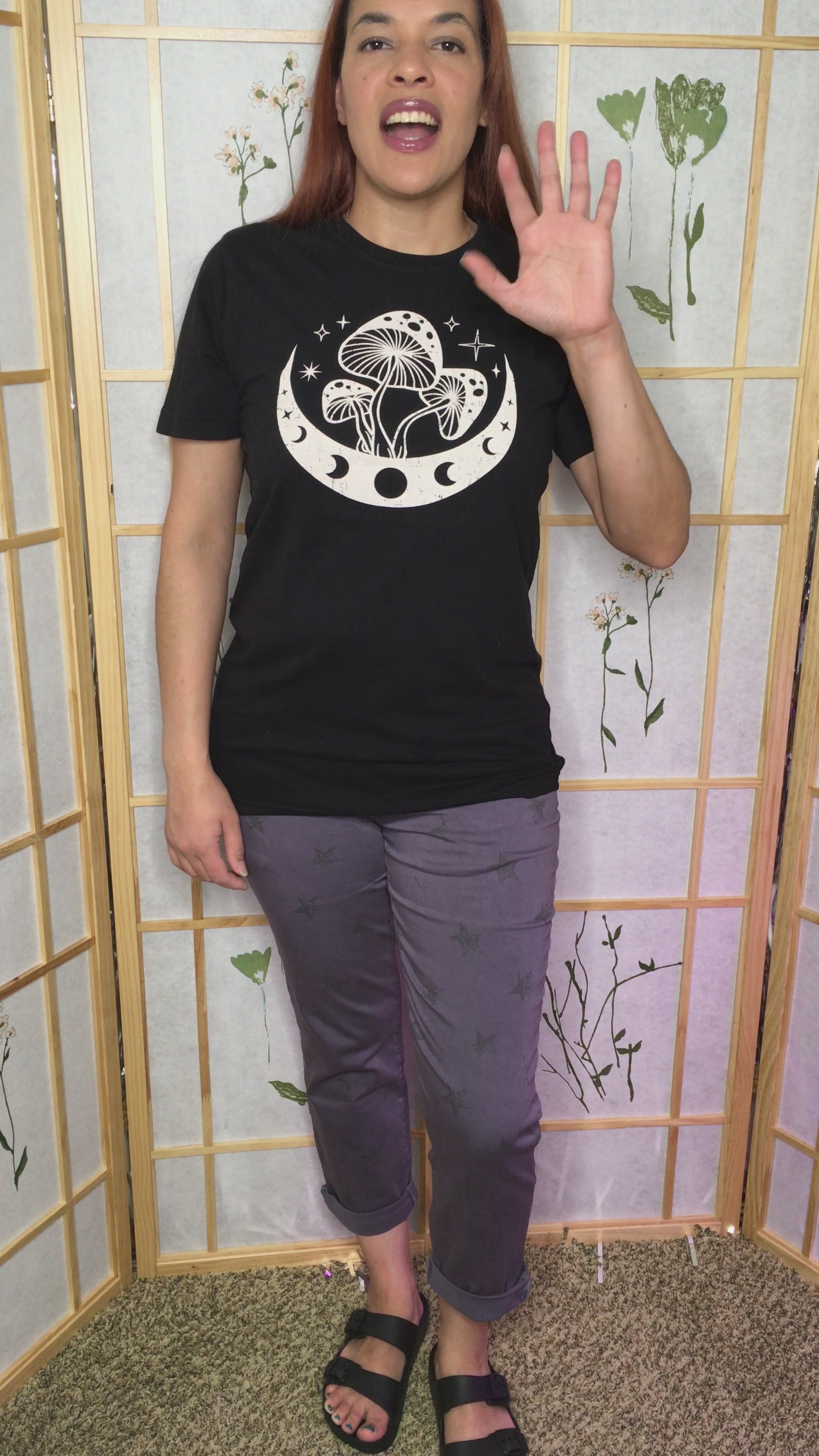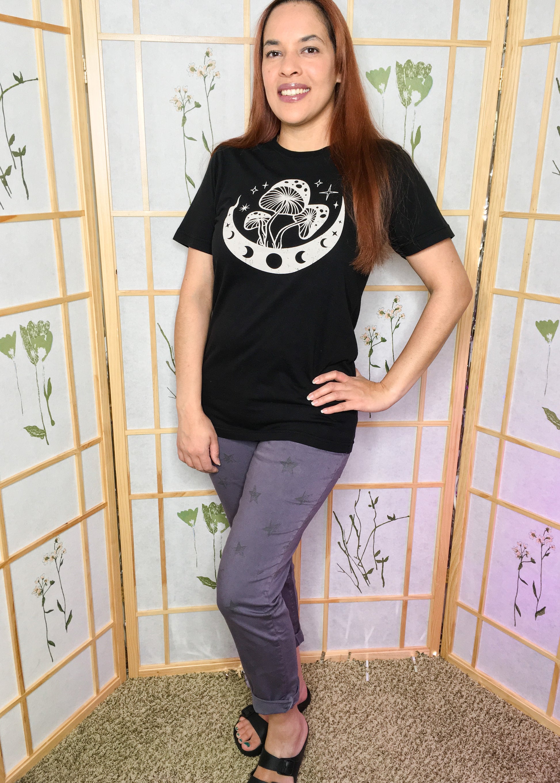 You are going to love this triple goddess moon mushroom graphic tee, not only has an amazing design, but it also has a unisex fit. Great length and good stretch.