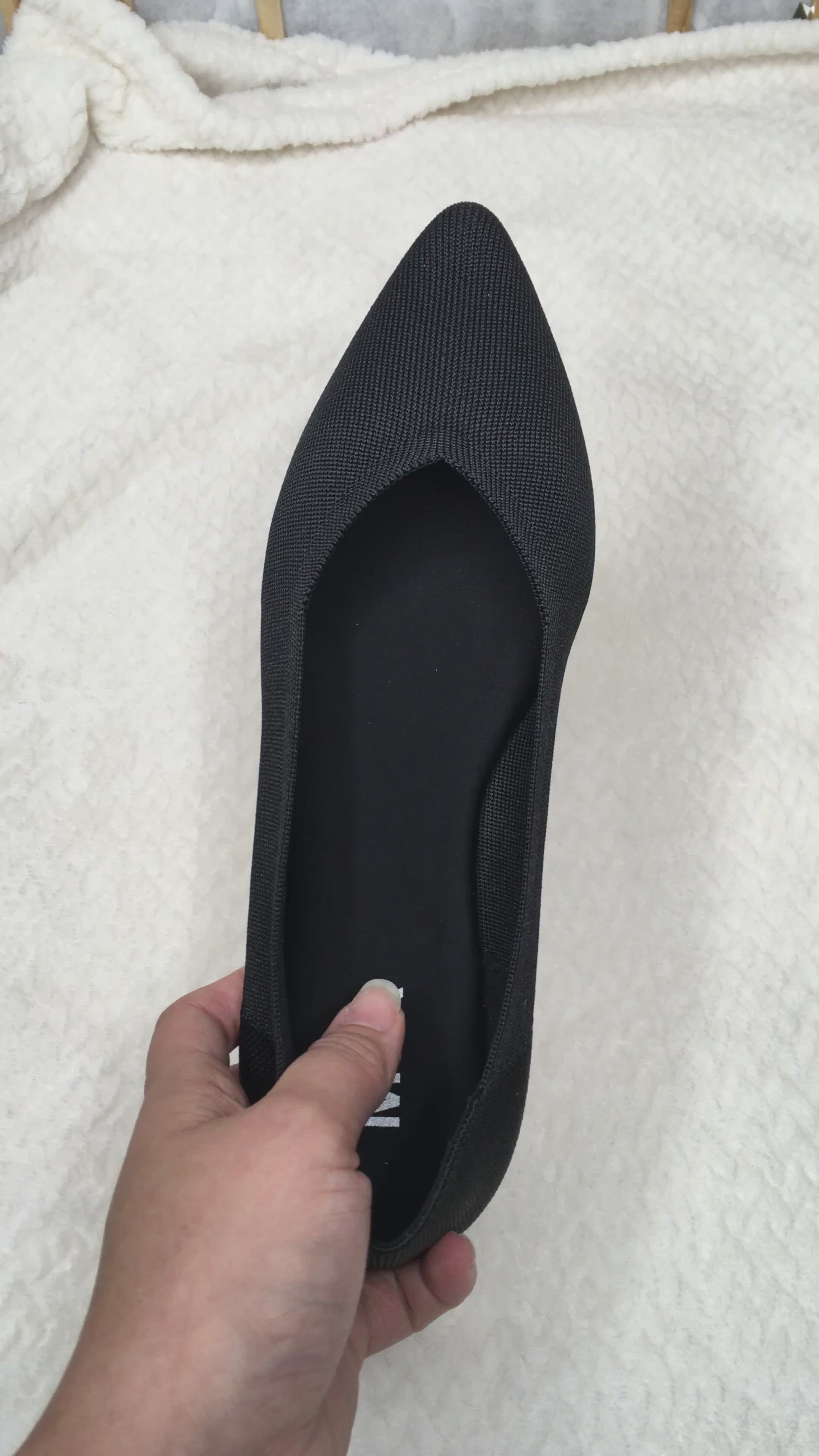 Step into comfort with this slip on knit pointy black flats. Cushioned insole and stretch knit fabric accommodates your foot for comfortability, style and versatility.