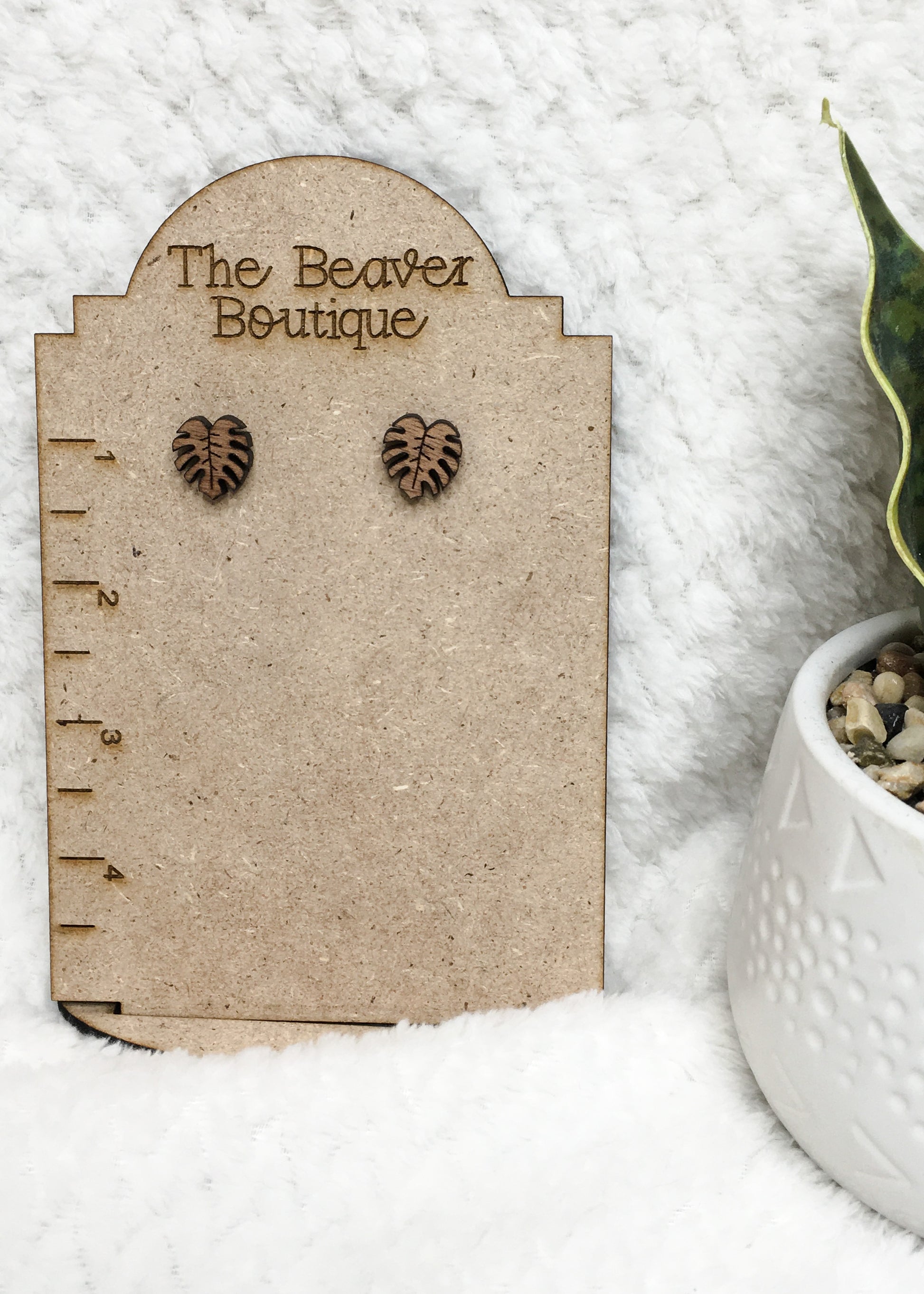 Beautiful hand drawn, laser cut and engraved monstera leaf wood studs. Great for sensitive ears and any plant lover out there.