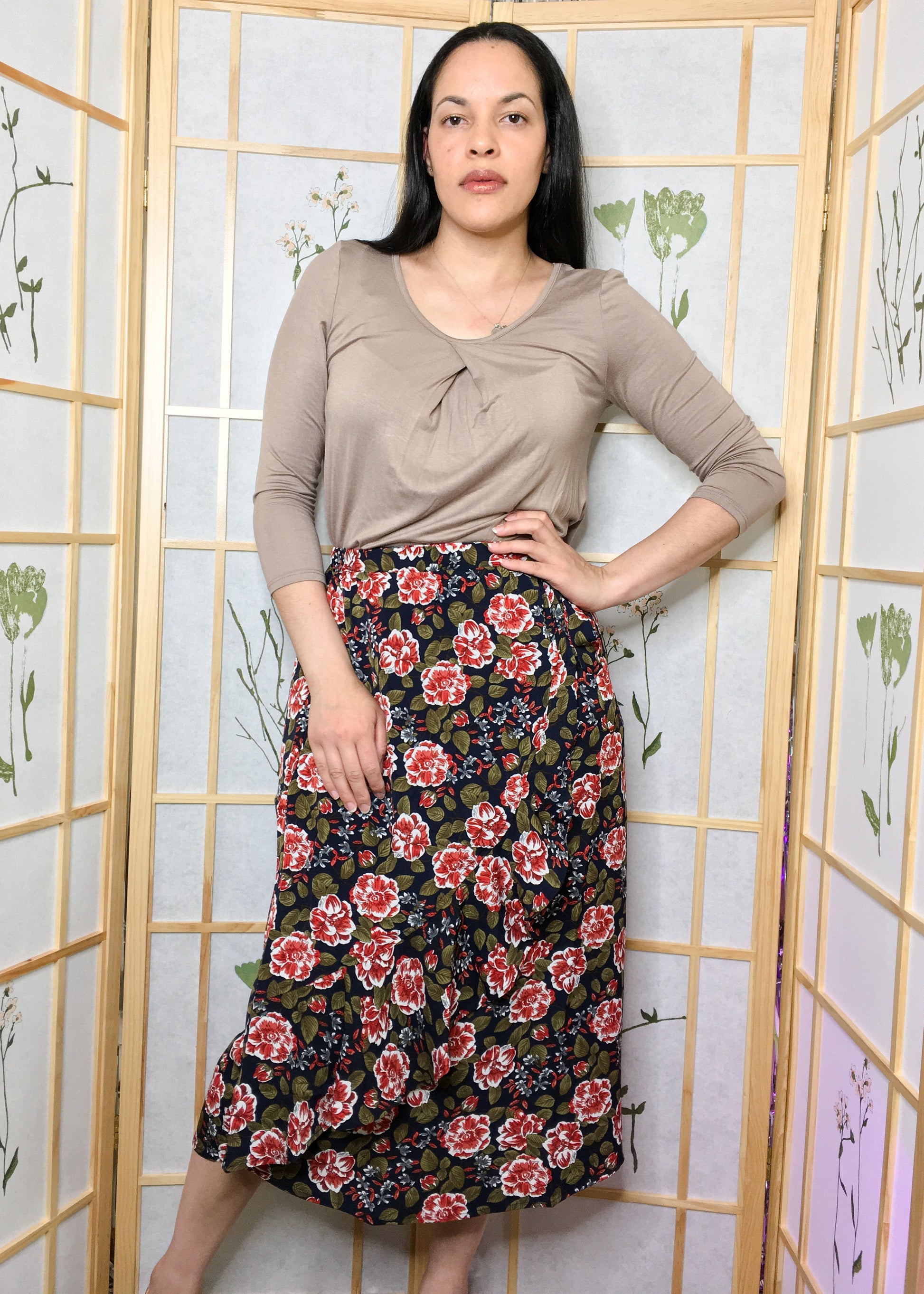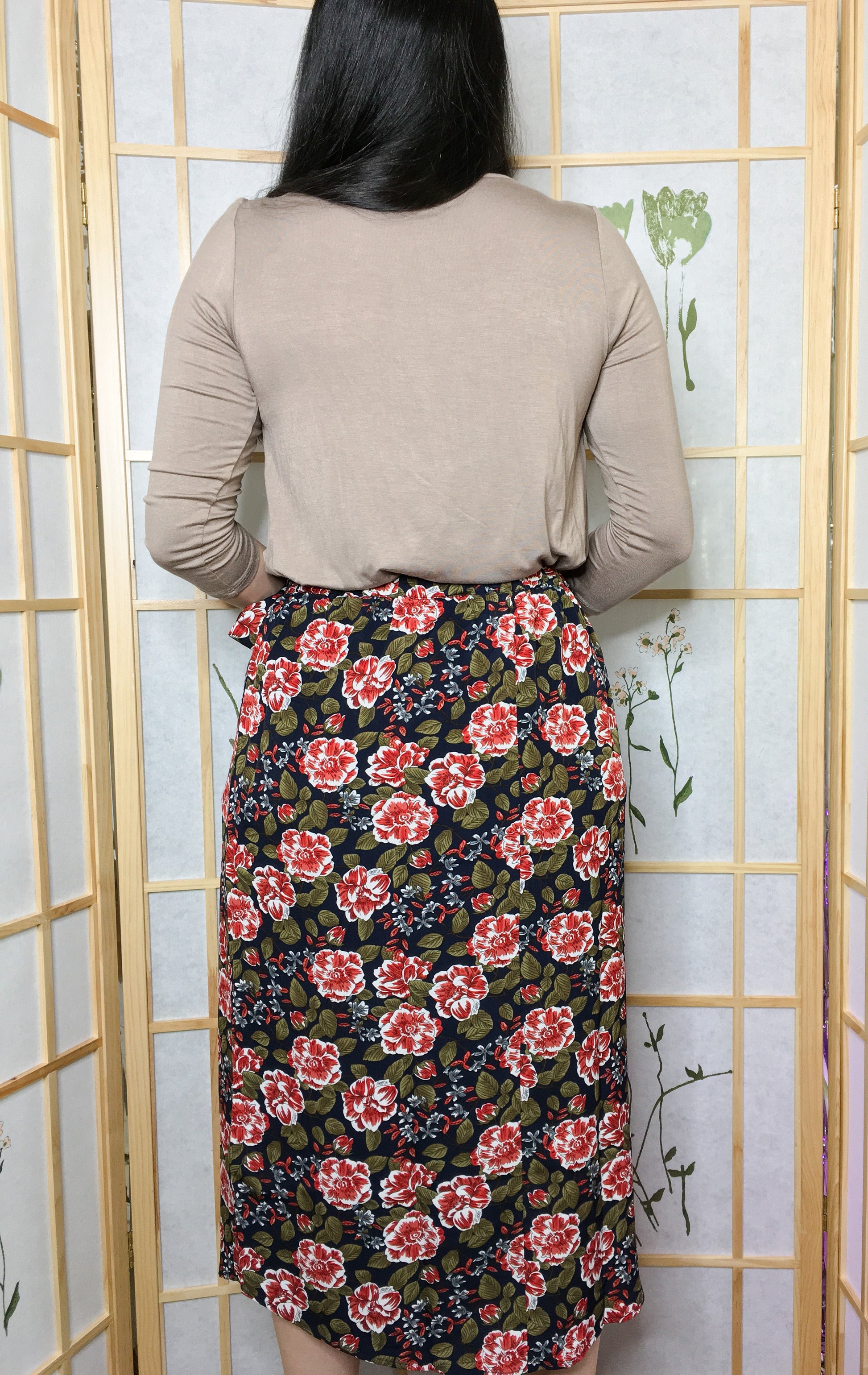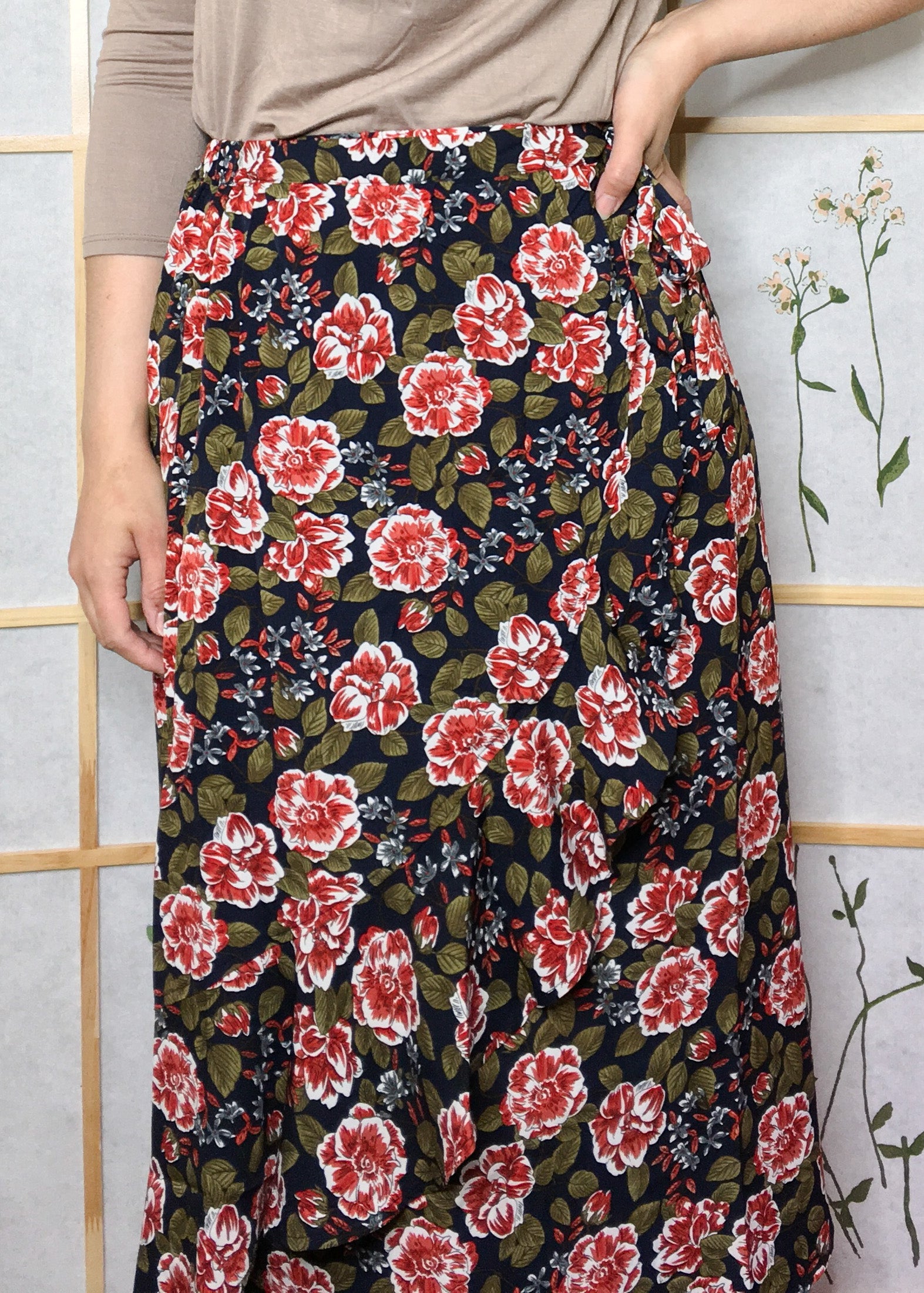 Red Dahlia is this beautiful midi floral skirt with a layered frontal design that can be tie at the side. This amazing skirt is very lightweight, soft and fits true to size.