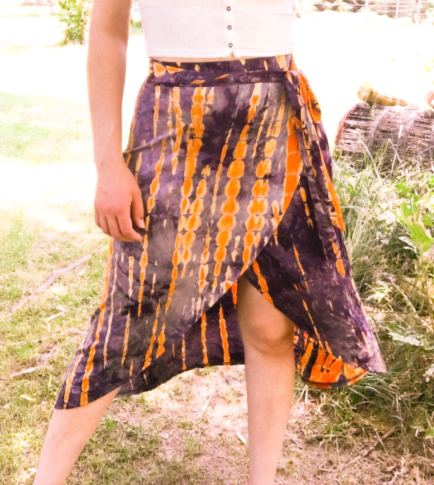 How pretty is our Tiger Lily wrap skirt?! Beautiful orange and blue tie dye together to bring you a blend of happy colors, that only a cute skirt like this can bring.
